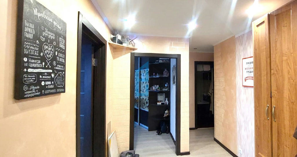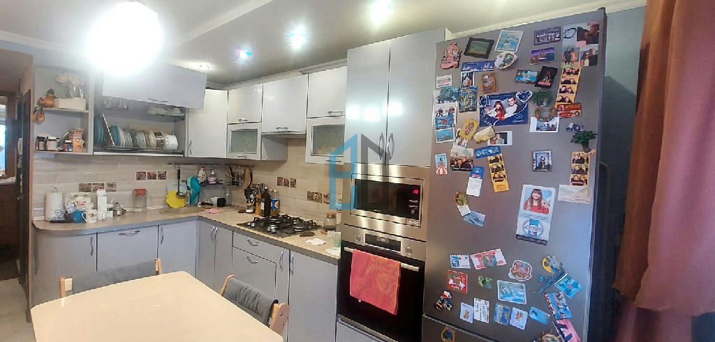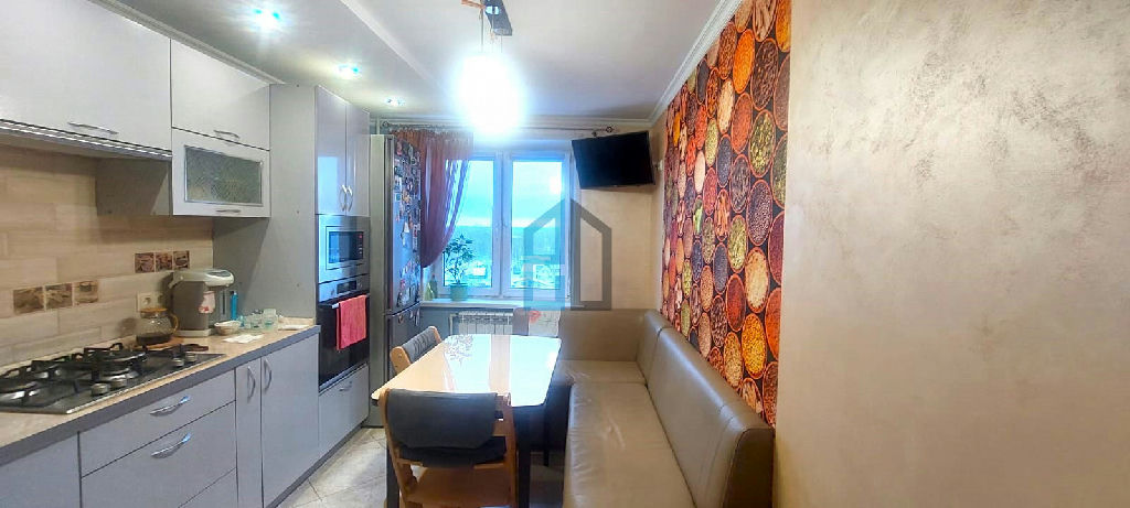 - прихожая, кухня, фартук кухни, ванна, туалет выложены плиткой. Полы: Ламинат во всех комнатах. Потолки натяжные с точечным освещением, кухня - гипсокартон. Стены: обои, покраска, декоративная штукатурка.