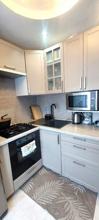В квартире остается кухонный гарнитур, шкаф в комнате.